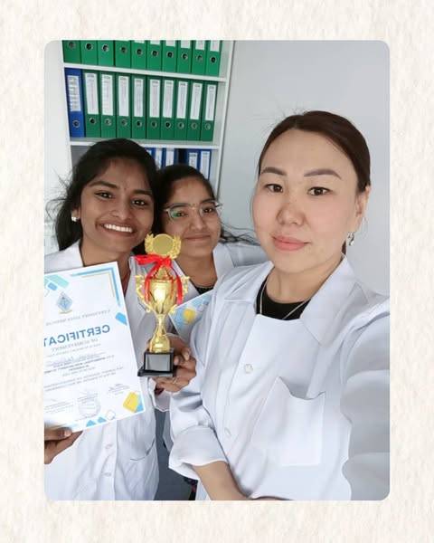 On April 22, 2025, first-year students of the School of Medicine of ADAM University took part in the International Integrative Olympiad on the topic: «Natural and Humanitarian Aspects of Medicine», which was held at the AzMI named after S. Tentishev in Kant.